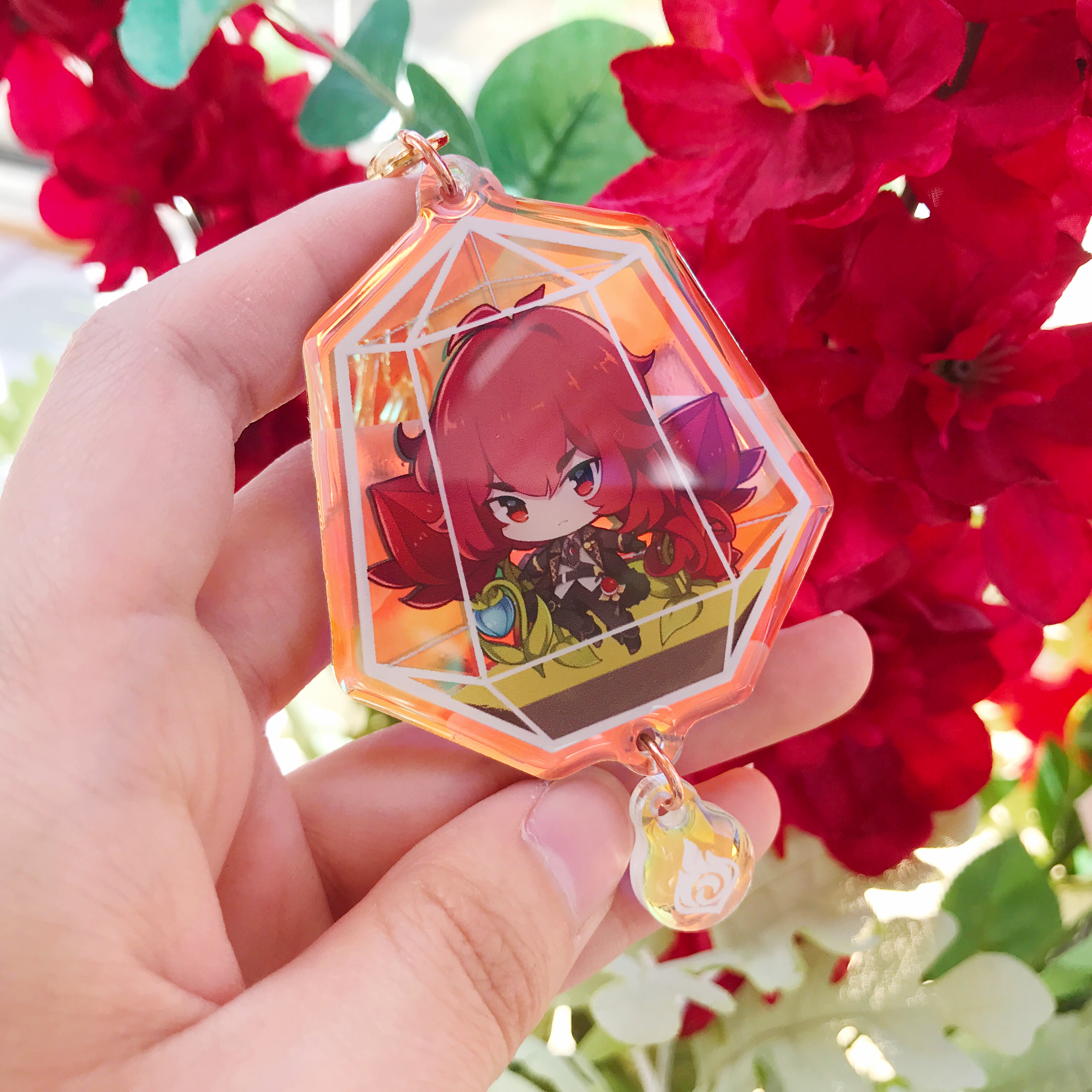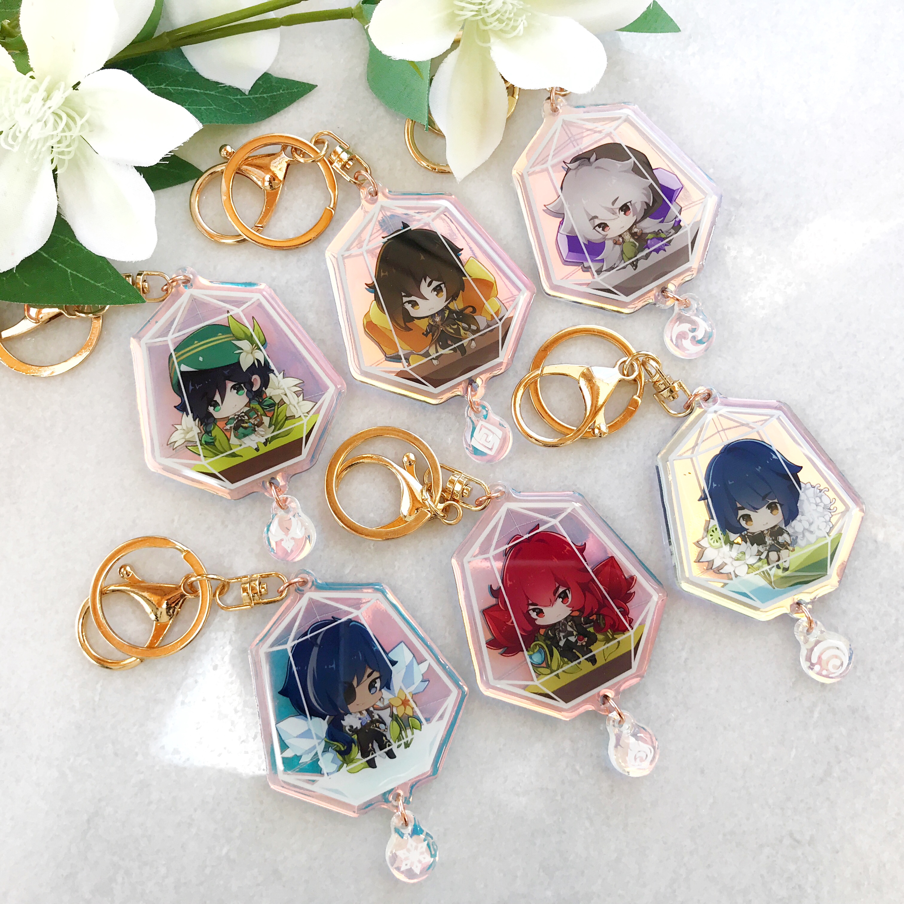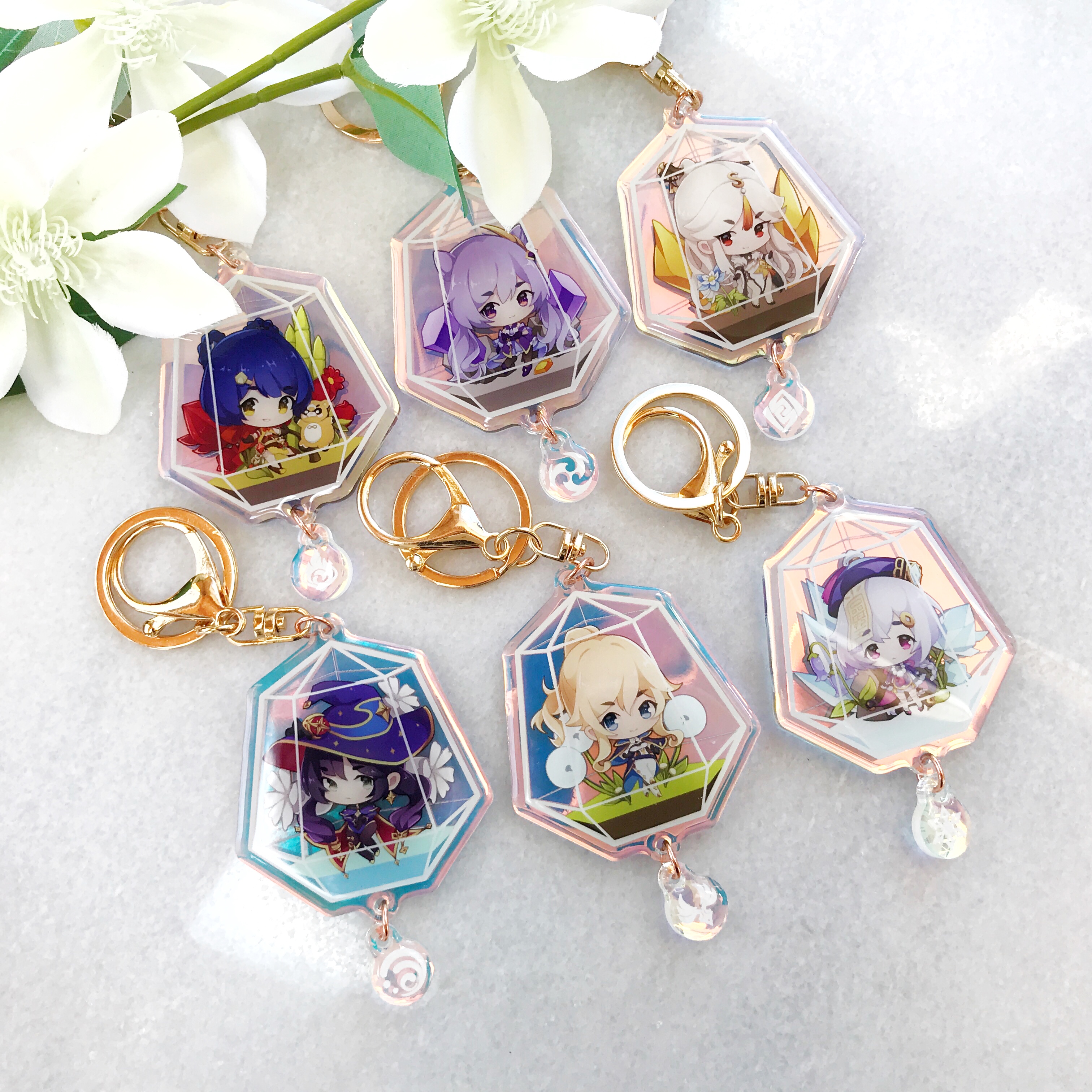 Elemental Terrarium dangle charms! Each character has a background with their respective element and ascension material.