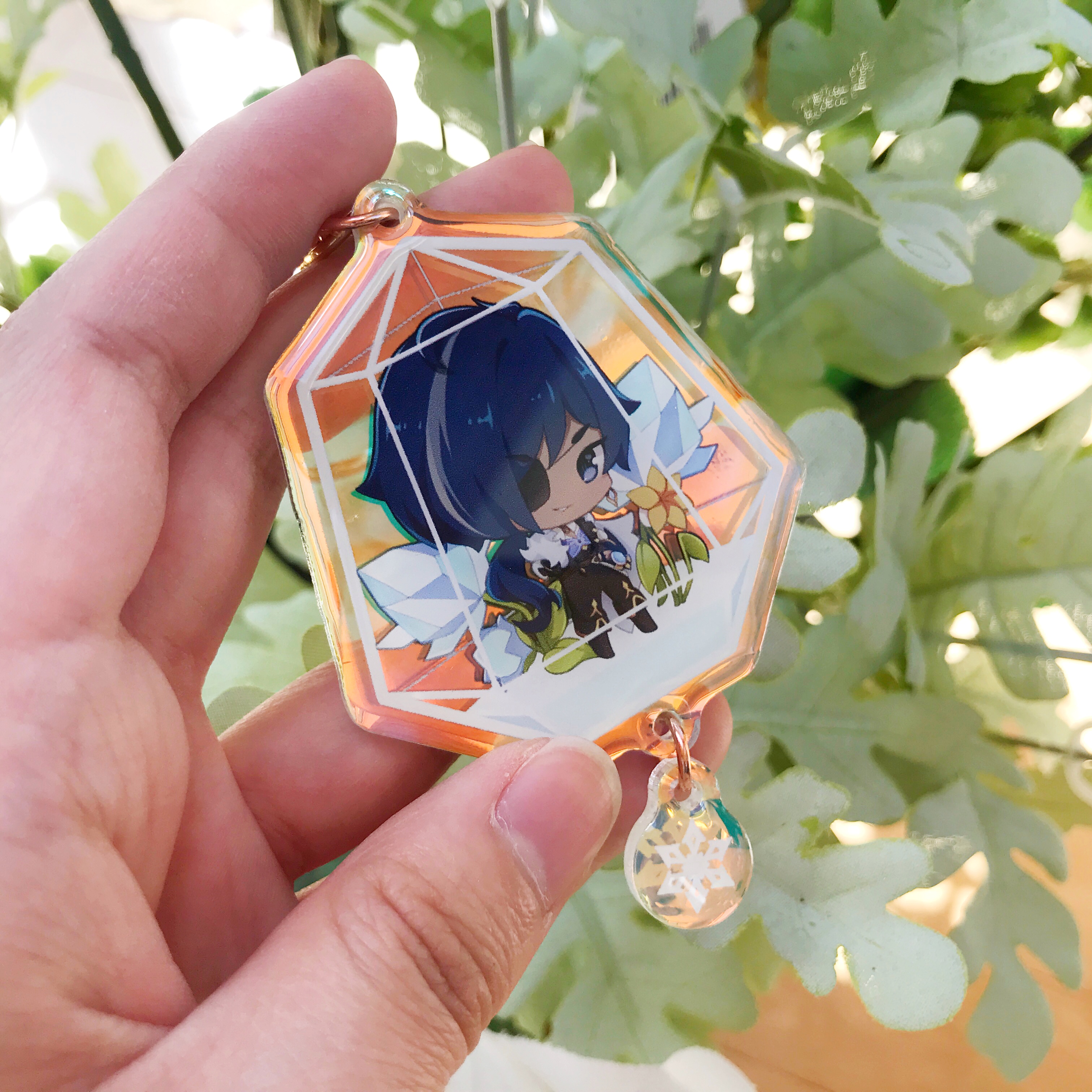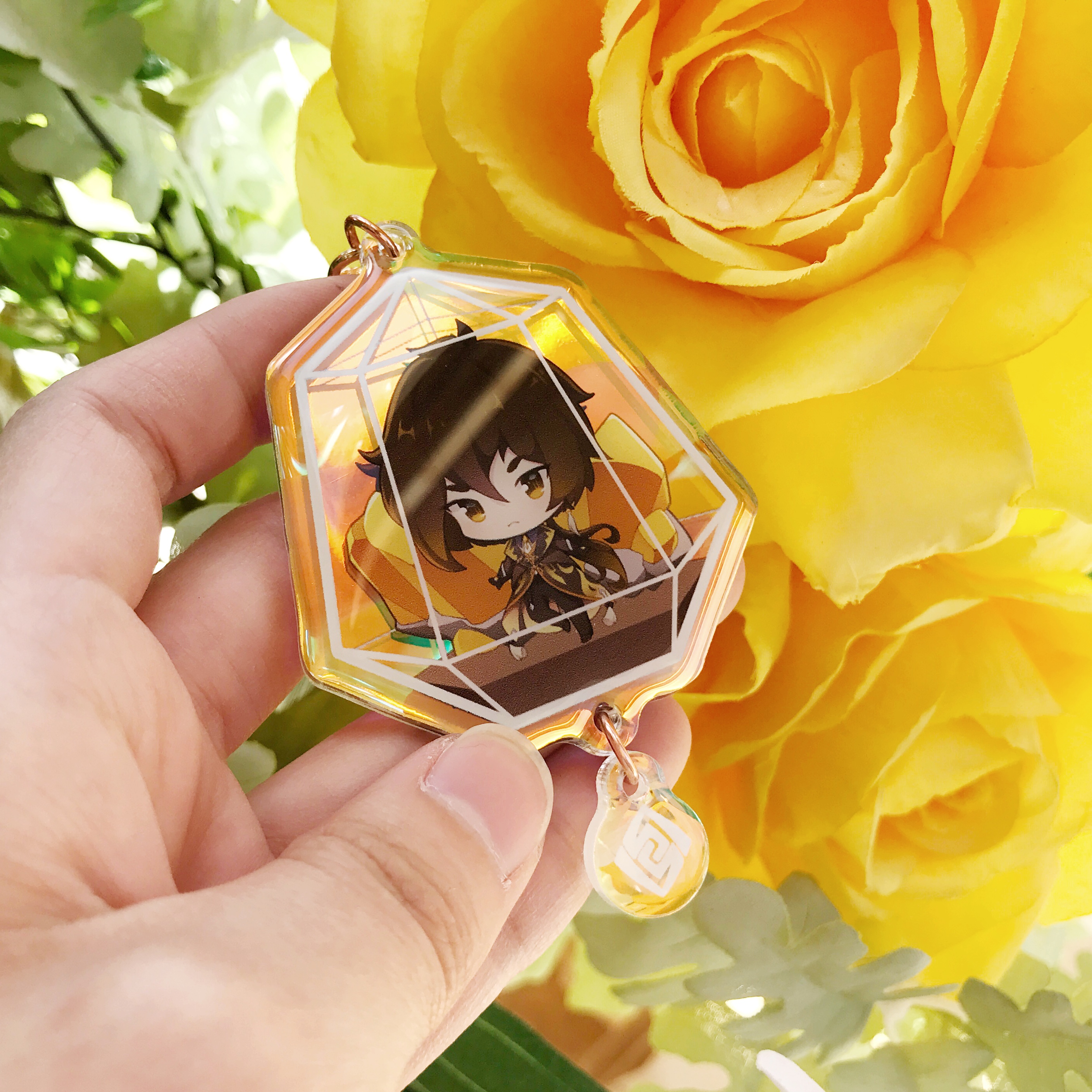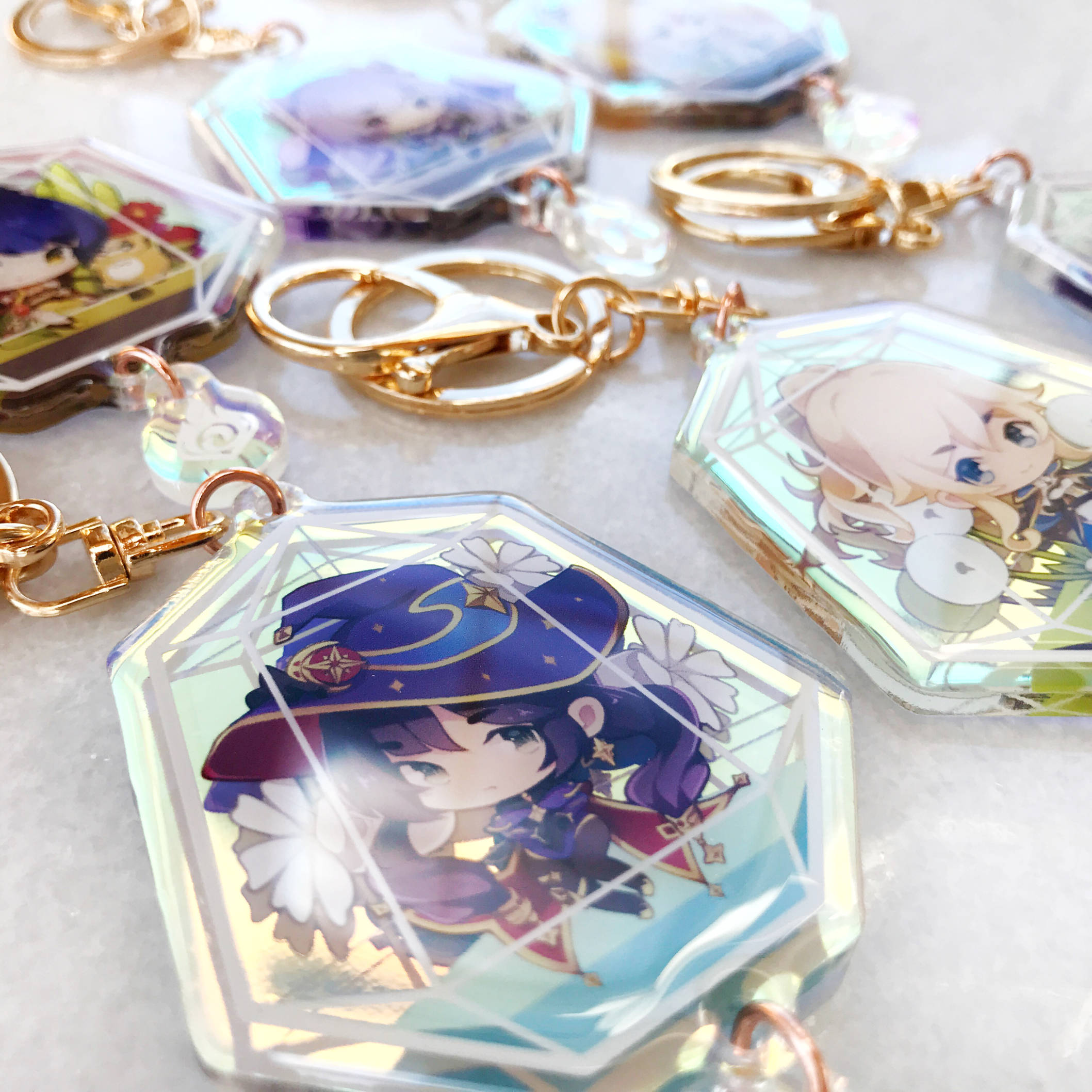 Elemental Terrarium dangle charms! Each character has a background with their respective element and ascension material.